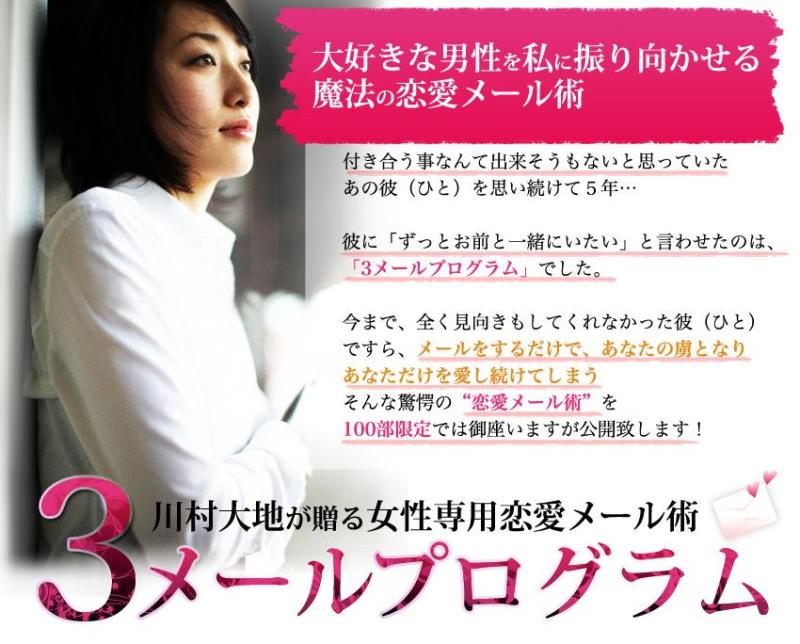 ⇒特典付き「[女性用]川村大地の3メールプログラム」の詳細はこちら!