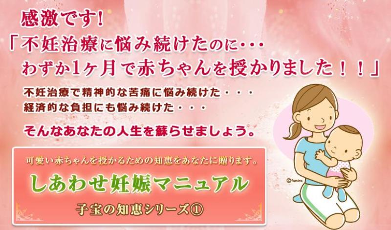 あなたに、可愛い赤ちゃんが授かる3つの知恵を教えます。カンタンに!!しかも、誰にも知られずに!!この方法は、はっきり言って不妊治療で大もうけしているドクターへの挑戦状です!私はそのつもりはないんですが・・・ (^_^;!しあわせ妊娠マニュアル